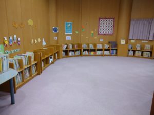 図書館内には、じゅうたんがしいてある部屋があり、絵本もたくさん置いてあるので、小さい子供と一緒に楽しめます。