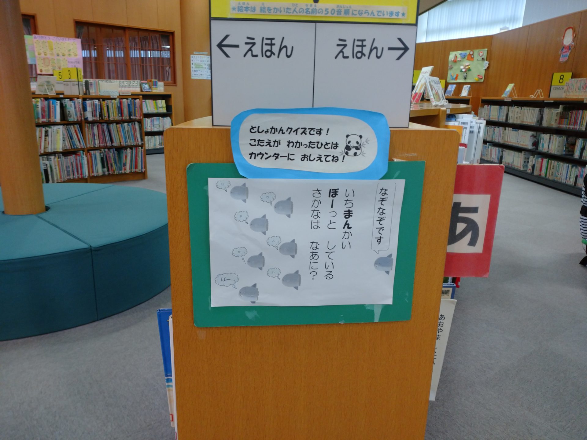 子ども達が読む絵本の近くに「なぞなぞ」がかいてあり、答えをスタッフに答えると、素敵な折り紙のプレゼントが貰えます。