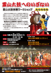 ワークショップ名 霊山太鼓体験ワークショップ「霊山太鼓へのいざない」