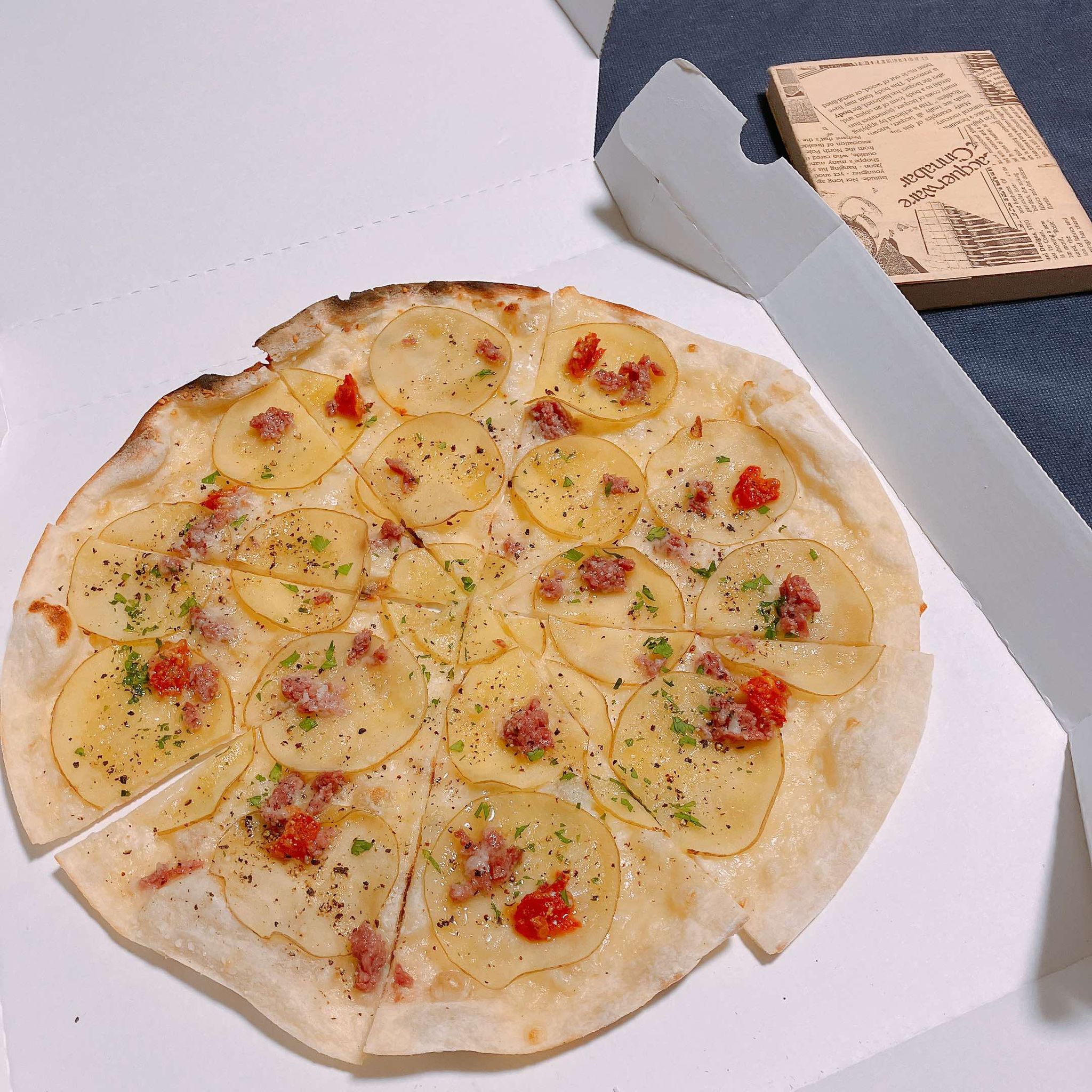その日の内容は、薄切りジャガイモとウンブリア風サラミのビアンカピザでした!