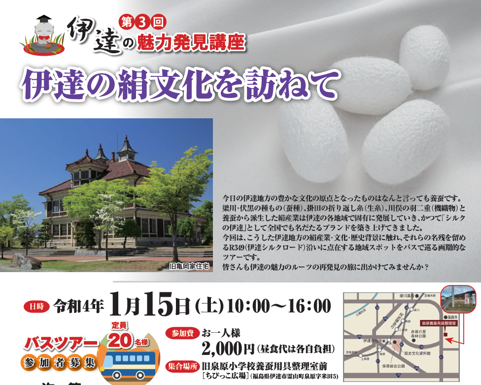 絹文化の魅力・その2元地域おこし支援員 浜田です。前回のコラムでは、伊達の地で築き上げた養蚕・絹の産業・文化資源は全国的にも誇れる稀有なものであり、今日の伊達の発展の礎となっていた事をお伝えしました。今回は先日この伊達の養蚕・絹文化の素晴らしさを実際に体感...