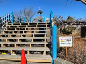 暖かくなり子どもが滑り台で遊びたがっていたので、大泉公園の大滑り台に行ってみたら、地震の影響で滑り台が破損して使用不可になっていました。そして、遊具周辺に人が多く過密状態だったので、大泉公園で遊ぶのは諦めました。
