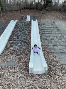 もう少し大きくなったらアスレチックで遊ぶこともできるし、桜の木が園内にたくさん存在するので、春に来たらはもっと楽しそう。