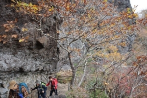 霊山は2007年に設定された新日本百名山に指定されました。福島県では吾妻山連峰(一切経山・西吾妻山)、安達太良山、磐梯山に並ぶ名山です。他4山と違いなぜ標高が千メートルにも満たない霊山が新百名山に指定されたのでしょう?これは、ただ頂上を目指す山登りではなく、登るプロセス自体を楽しめる山。つまり、途上で様々な見どころスポットがコンパクトに配置され、どなたでも気軽に登れる山と評価されたからだと思います。先日、中学校の生徒たちをご案内した時、生徒の皆さんは、“ここは自然のワンダーランドだ!”と喜んでいました。