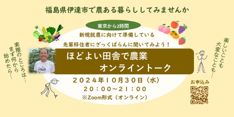 こんにちは!定住支援員の菊田瑠香です🐬9月も下旬に差し掛かります。少しずつ気温が下がり始めましたがみなさまいかがお過ごしでしょうか?さて、今回は10月に開催する新規就農に興味がある方向けのオンラインセミナーのご案内です!【開催概要】... -